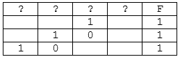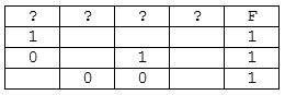 На рисунке приведён частично заполненный фрагмент таблицы истинности функции F, содержащий неповторяющиеся строки. Определите, какому столбцу таблицы истинности функции F соответствует каждая из переменных x, y, z, w.